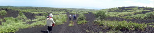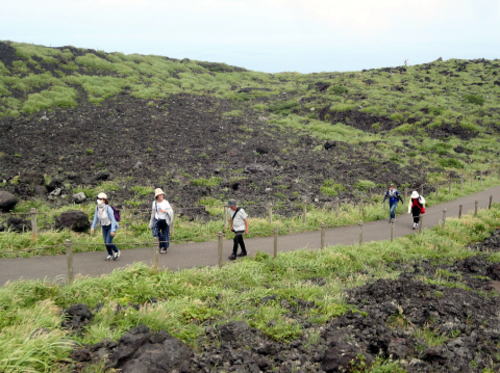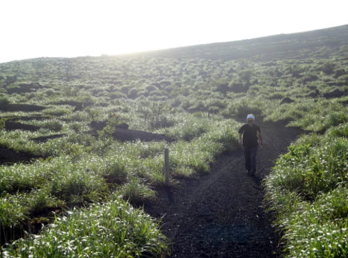 度重なる噴火で降り注いだ溶岩により一面黒い世界を作り上げられた裏砂漠の大地を踏みしめる音を一歩一歩確かめながら御神火を下山する。
